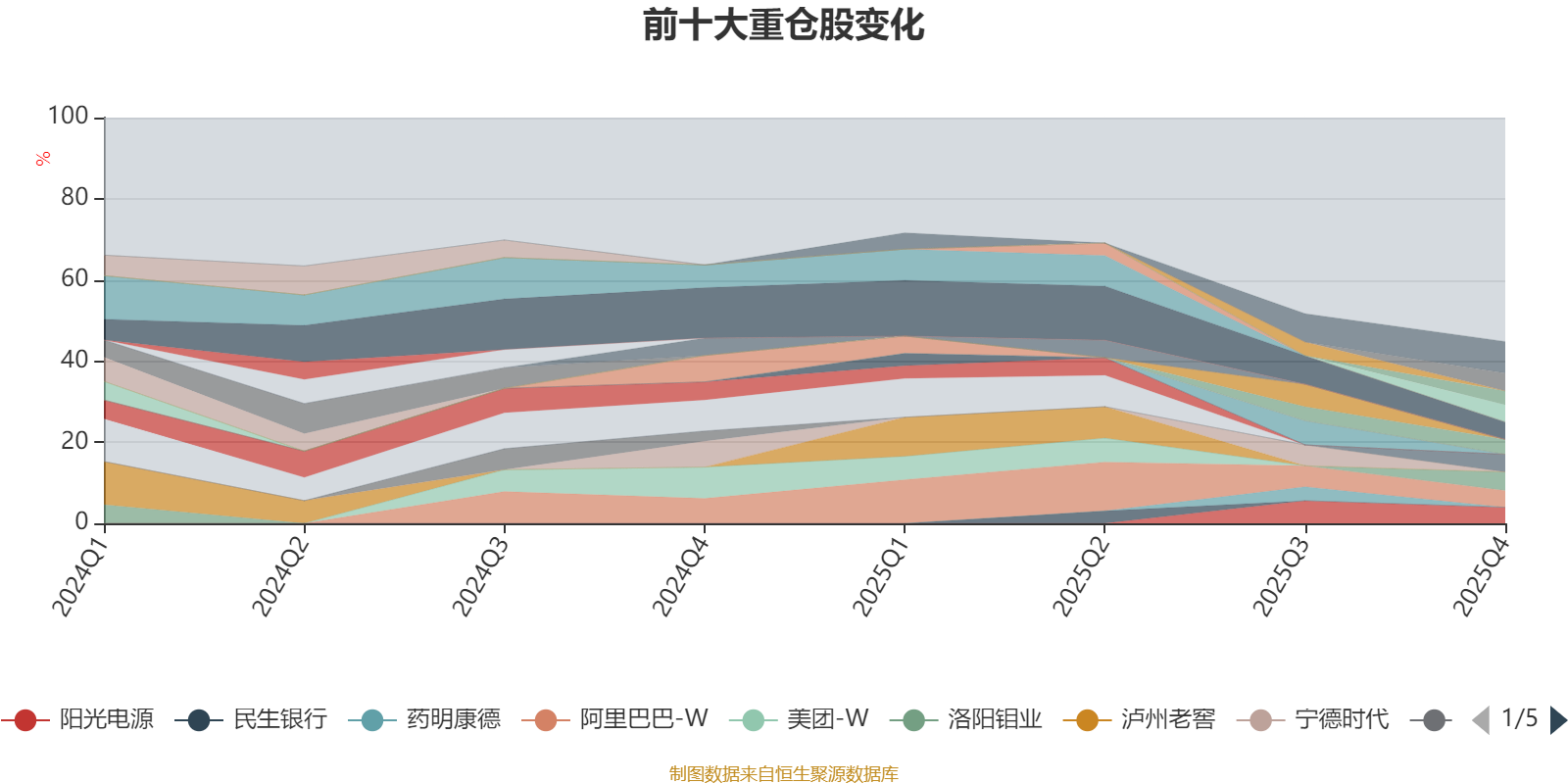 截至2025年末,基金十大重仓股分别是中芯国际、洛阳钼业、中国人寿、华新建材、腾讯控股、山东黄金、阿里巴巴-W、阳光电源、赣锋锂业、金风科技。
