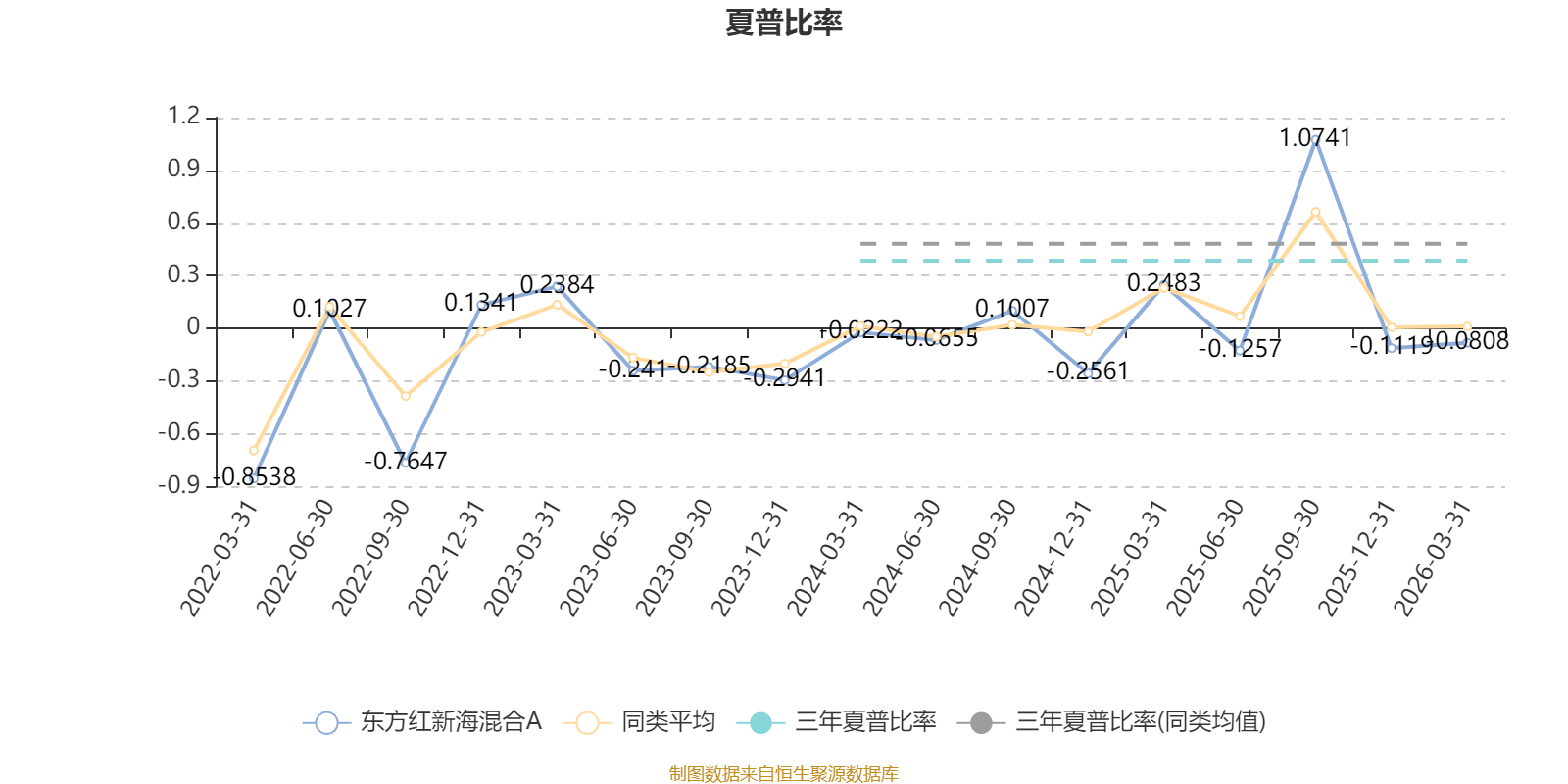 截至3月31日,基金近三年夏普比率为0.385,位于同类可比基金79/124。