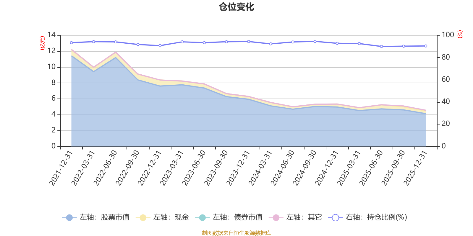 据定期报告数据统计,基金股票仓位长期保持较高水平,近三年平均股票仓位为92.82%,同类平均为85.83%。2024年三季度末基金达到94.62%的最高仓位,2025年上半年末最低,为90.05%。