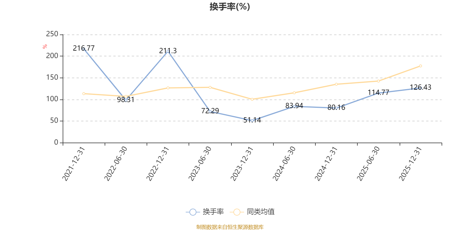 截至2025年12月31日,基金最近一年换手率约239.1%,持续3年低于同类均值。