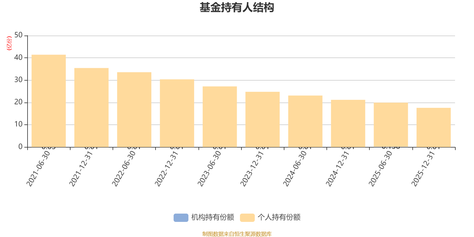 截至2025年12月31日,基金持有人共计1.69万户,合计持有17.6亿份。其中管理人员工持有438.21万份,占比0.25%,机构持有份额占比0.06%,个人投资者占比99.94%。