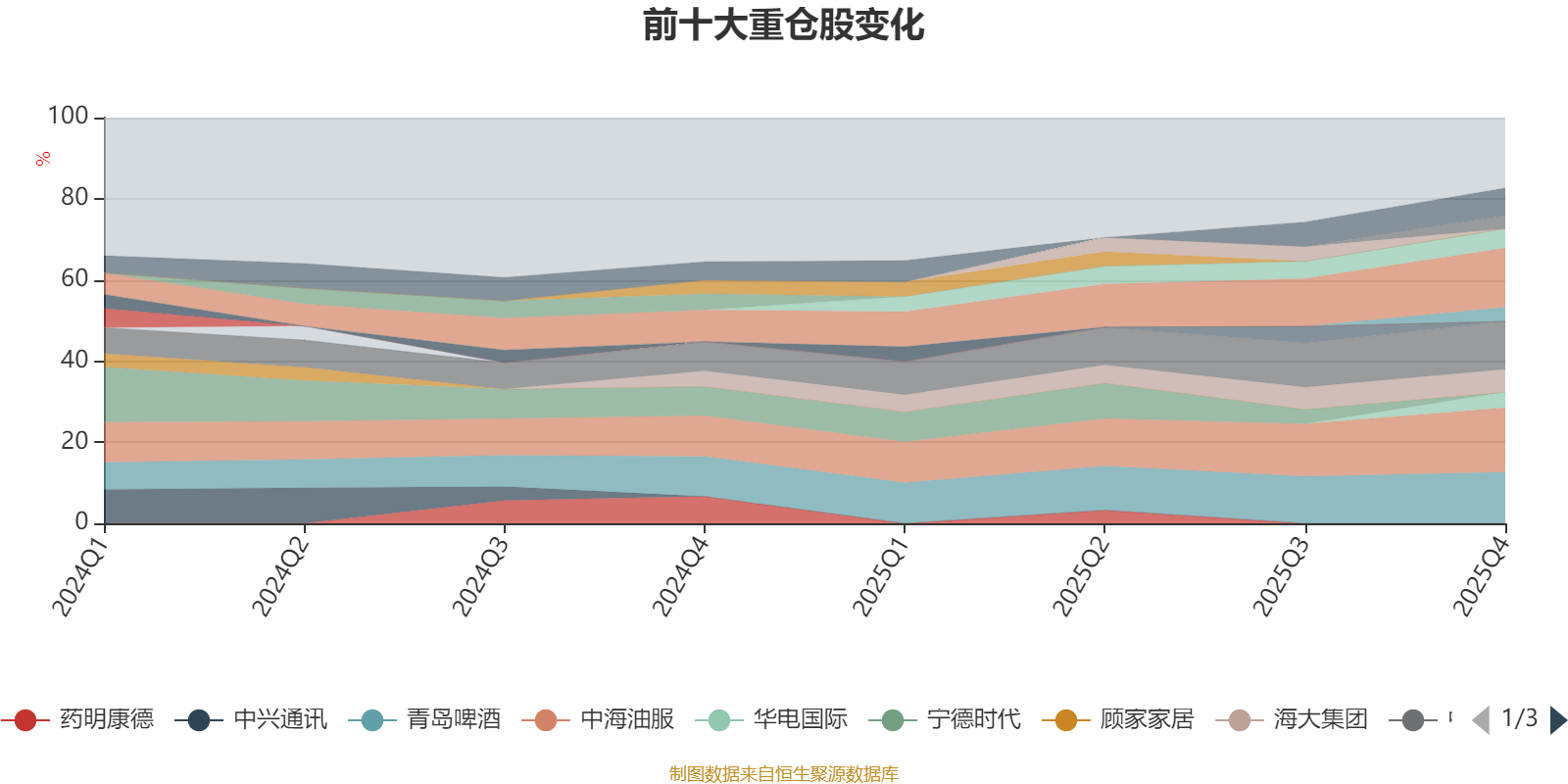 该基金持股集中度较高,近2年前十大重仓股集中度长期超过60%。截至2025年末,基金十大重仓股分别是中海油服、华能国际、青岛啤酒、中国联通、顺丰控股、海大集团、中国电信、华电国际、裕同科技、华测检测。