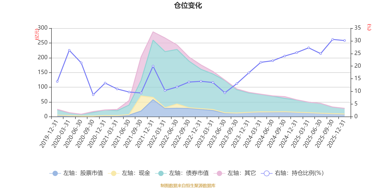 据定期报告数据统计,近三年平均股票仓位为21.61%,同类平均为19.2%。2025年三季度末基金达到30.56%的最高仓位,2020年三季度末最低,为8.68%。