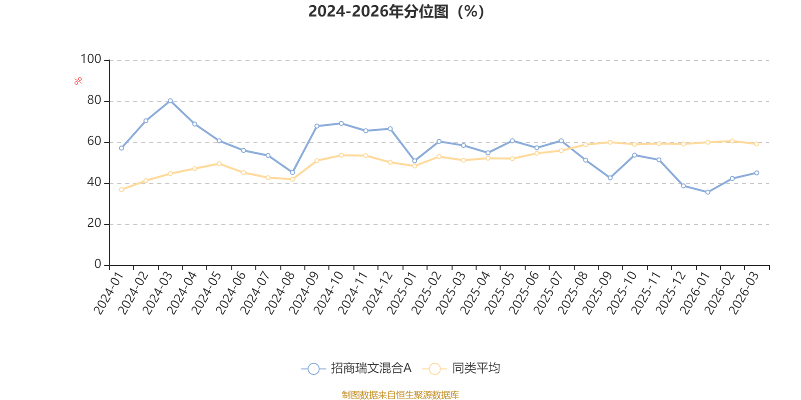 通过所选区间该基金净值增长率分位图,可以观察该基金与同类基金业绩比较情况。图为坐标原点到区间内某时点的净值增长率在同类基金中的分位数。
