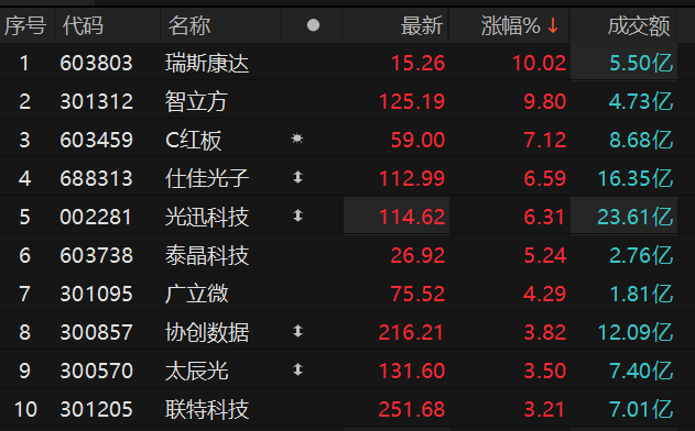 上证报中国证券网讯 4月13日,CPO概念走高,截至9时38分,瑞斯康达涨停,仕佳光子、光迅科技、泰晶科技等跟涨。