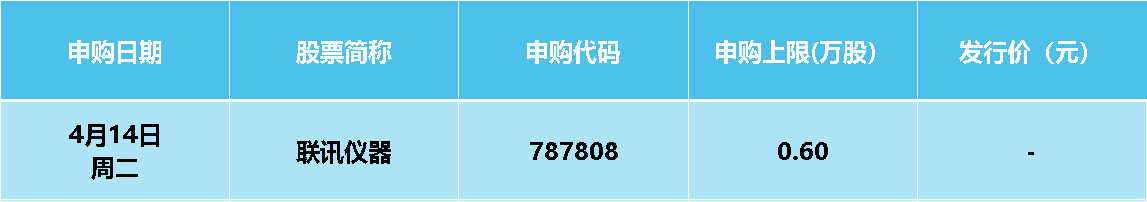本周(4月13日至4月19日),沪深两市有1只新股申购,来自科创板。