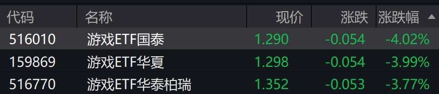 原标题:游戏概念股走弱,游戏相关ETF跌约4%