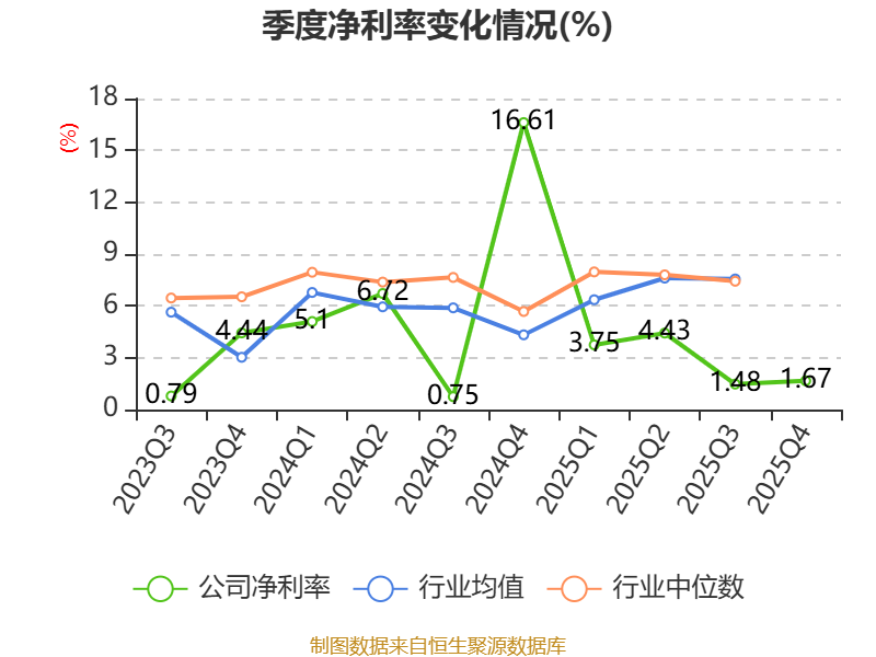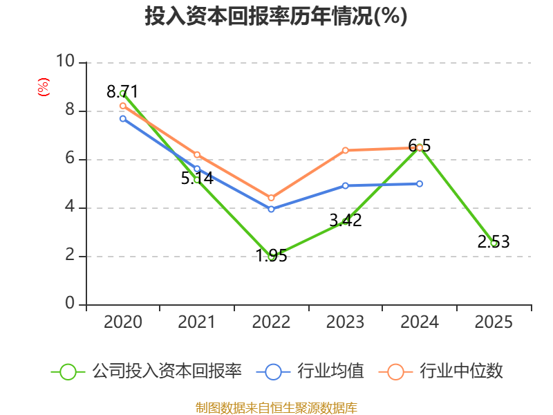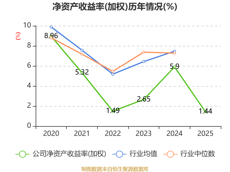 数据显示,2025年公司加权平均净资产收益率为1.44%,较上年同期下降4.46个百分点。公司2025年投入资本回报率为2.53%,较上年同期下降3.97个百分点。