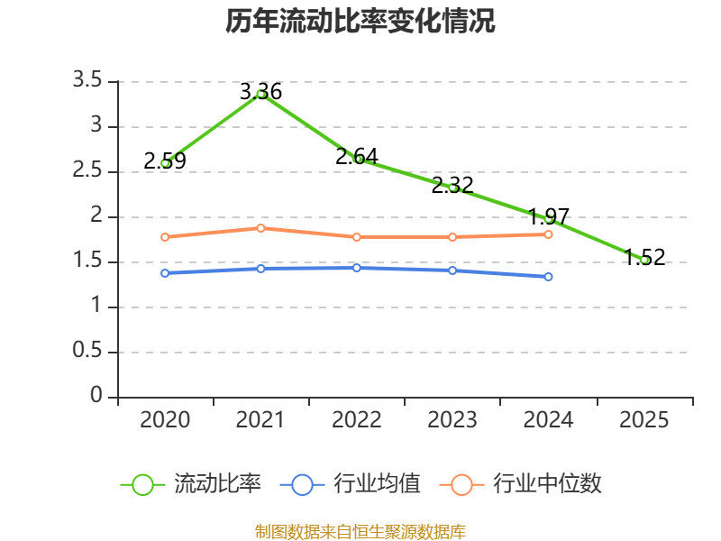 2025年,公司流动比率为1.52,速动比率为1.09。