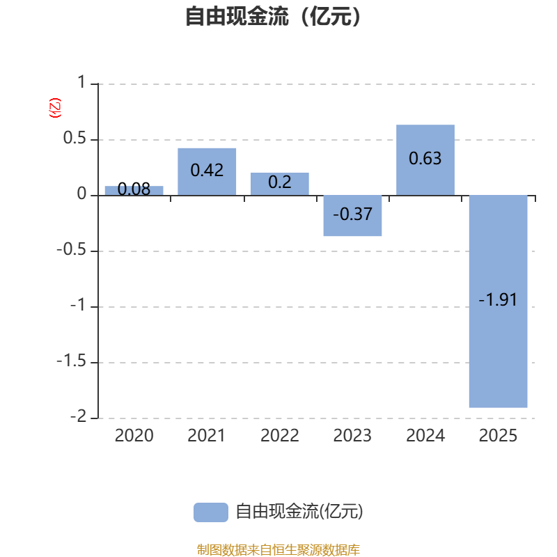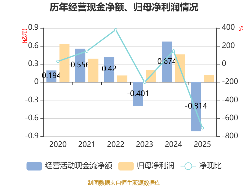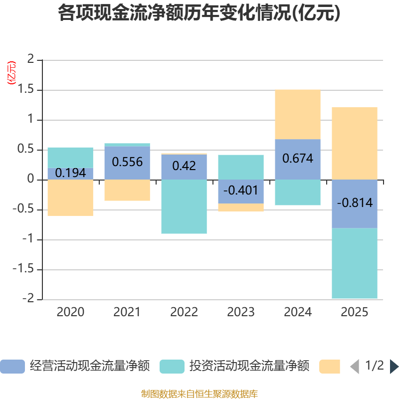 截至2025年,公司经营活动现金流净额为-8142.16万元,同比减少1.49亿元;筹资活动现金流净额1.21亿元,同比增加3798.78万元;投资活动现金流净额-1.17亿元,上年同期为-4276.73万元。
