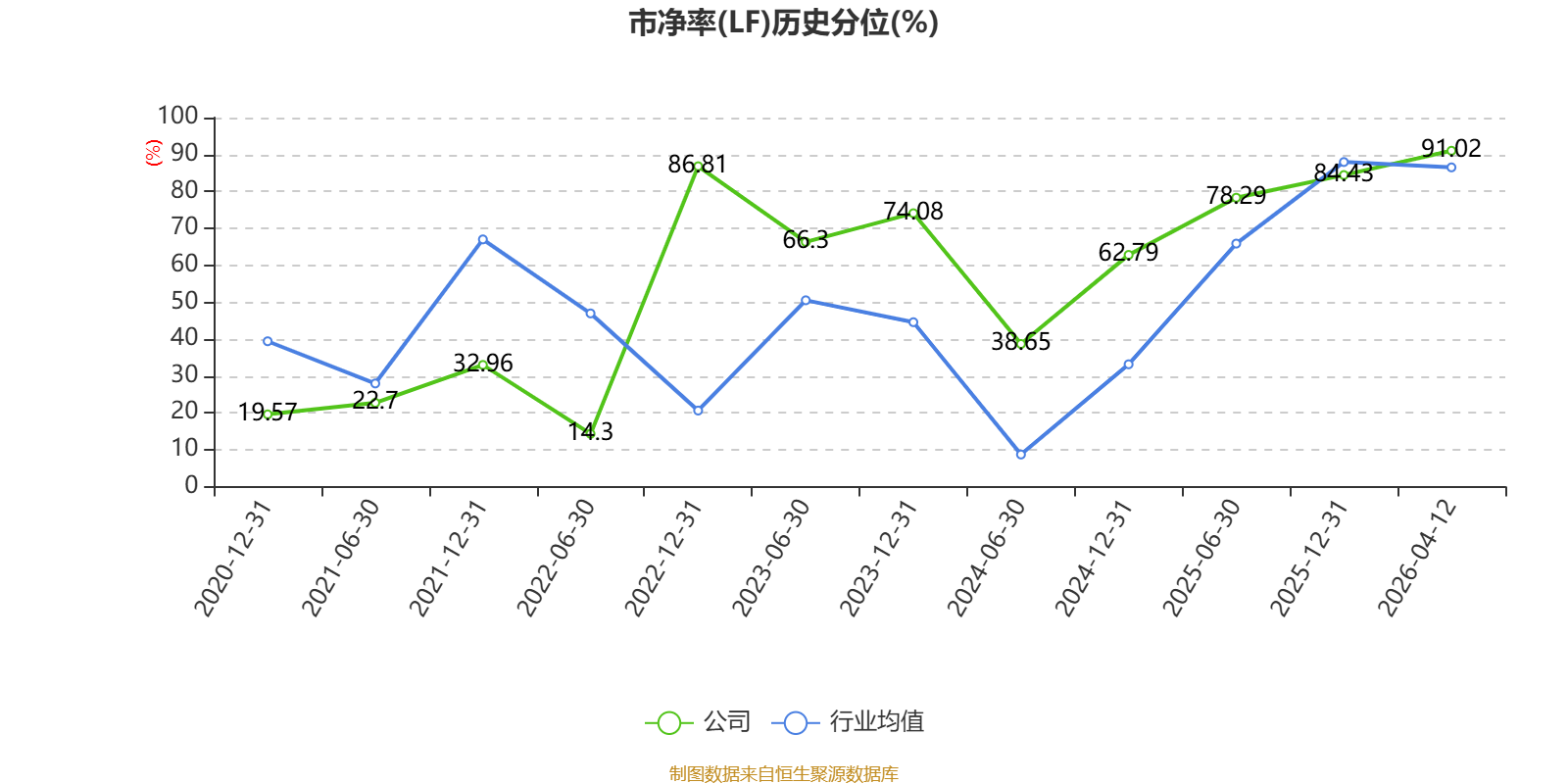 市盈率、市净率为负时,不显示当期分位数,会导致折线图中断。