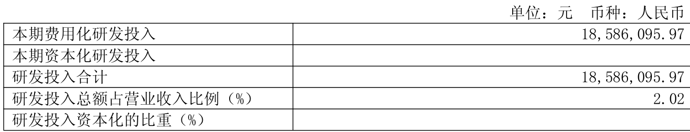 2025年全年,公司研发投入金额为1858.61万元,同比增长1.17%;研发投入占营业收入比例为2.02%,相比上年同期下降0.58个百分点。此外,公司全年研发投入资本化率为0%。