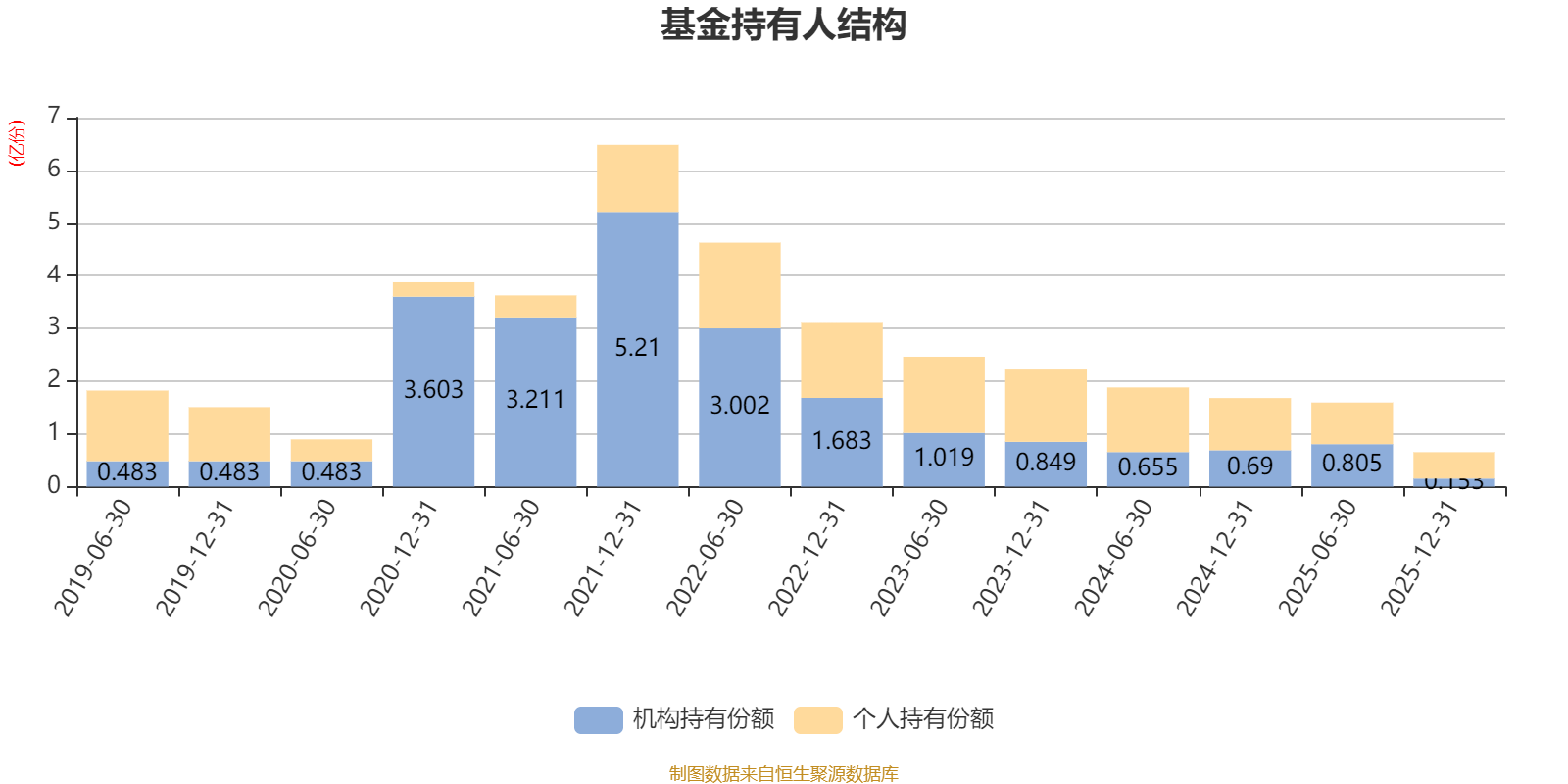 截至2025年12月31日,基金持有人共计3046户,合计持有6534.63万份。其中管理人员工持有116.11万份,占比1.78%,机构持有份额占比23.47%,个人投资者占比76.53%。