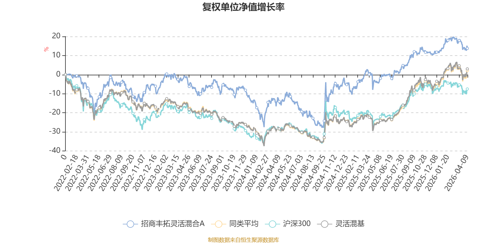 截至4月9日,招商丰拓灵活混合A近三个月复权单位净值增长率为-2.52%,位于同类可比基金821/1287;近半年复权单位净值增长率为-0.47%,位于同类可比基金830/1286;近一年复权单位净值增长率为19.42%,位于同类可比基金868/1286;近三年复权单位净值增长率为14.29%,位于同类可比基金623/1286。