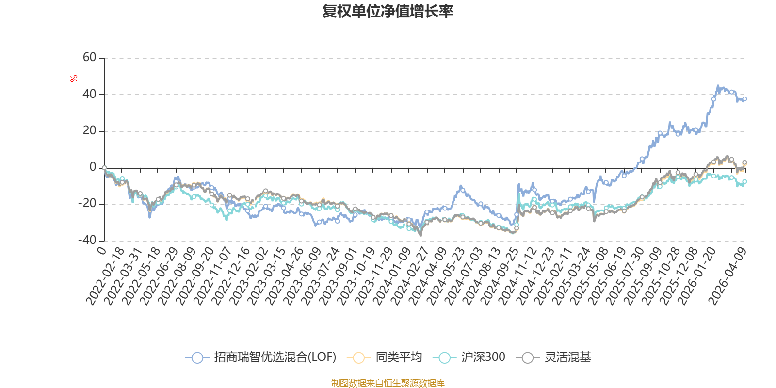 截至4月9日,招商瑞智优选混合(LOF)近三个月复权单位净值增长率为5.59%,位于同类可比基金174/1287;近半年复权单位净值增长率为9.84%,位于同类可比基金244/1286;近一年复权单位净值增长率为61.69%,位于同类可比基金245/1286;近三年复权单位净值增长率为82.16%,位于同类可比基金47/1286。