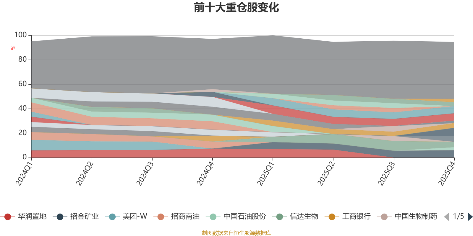 该基金持股集中度较高。截至2025年末,基金十大重仓股分别是中国平安、招金矿业、山东黄金、赤峰黄金、盐湖股份、信达生物、山金国际、新华保险、中国人寿、中国石油股份。