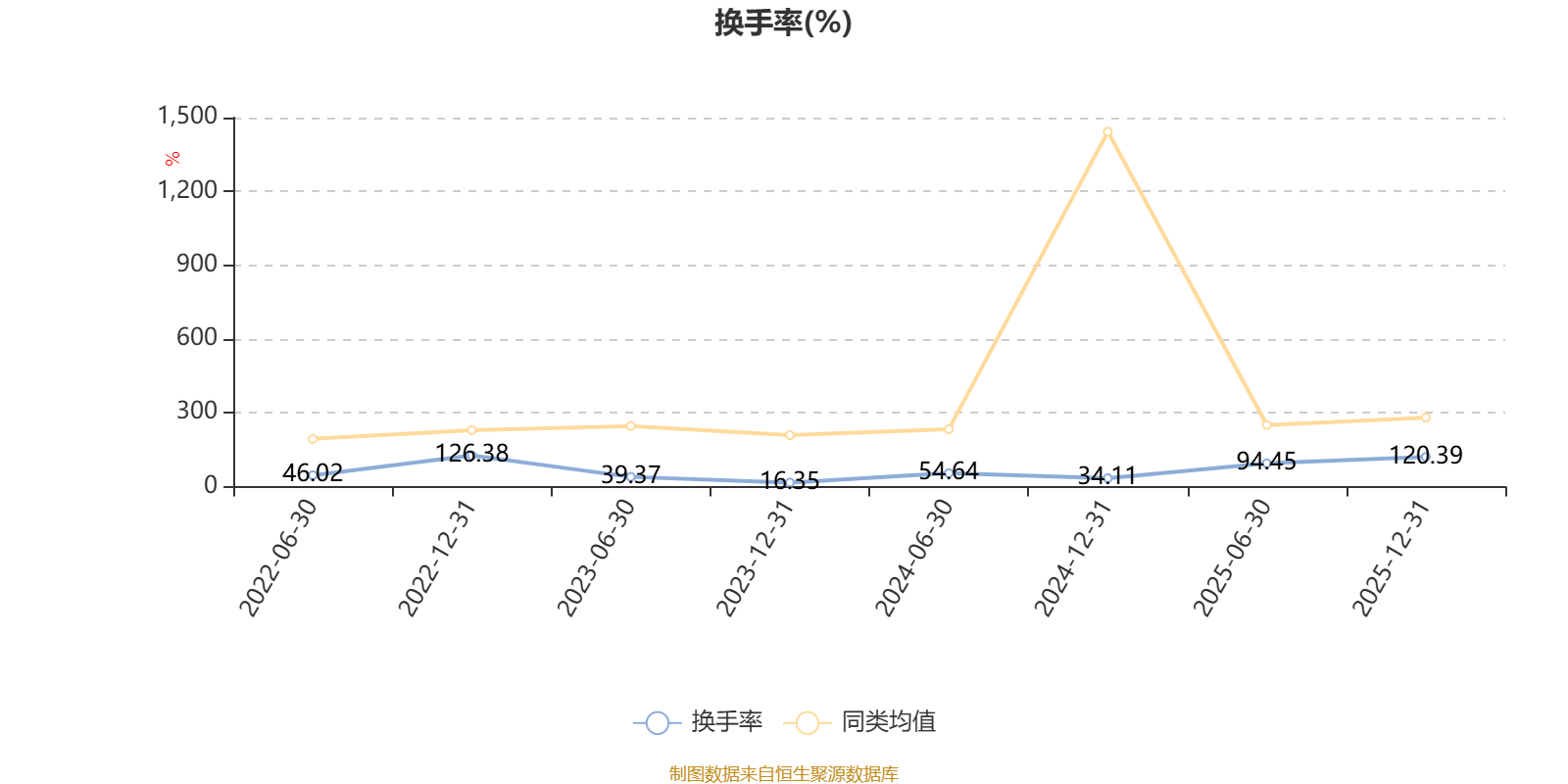 截至2025年12月31日,基金最近一年换手率约214.87%,持续低于同类均值。