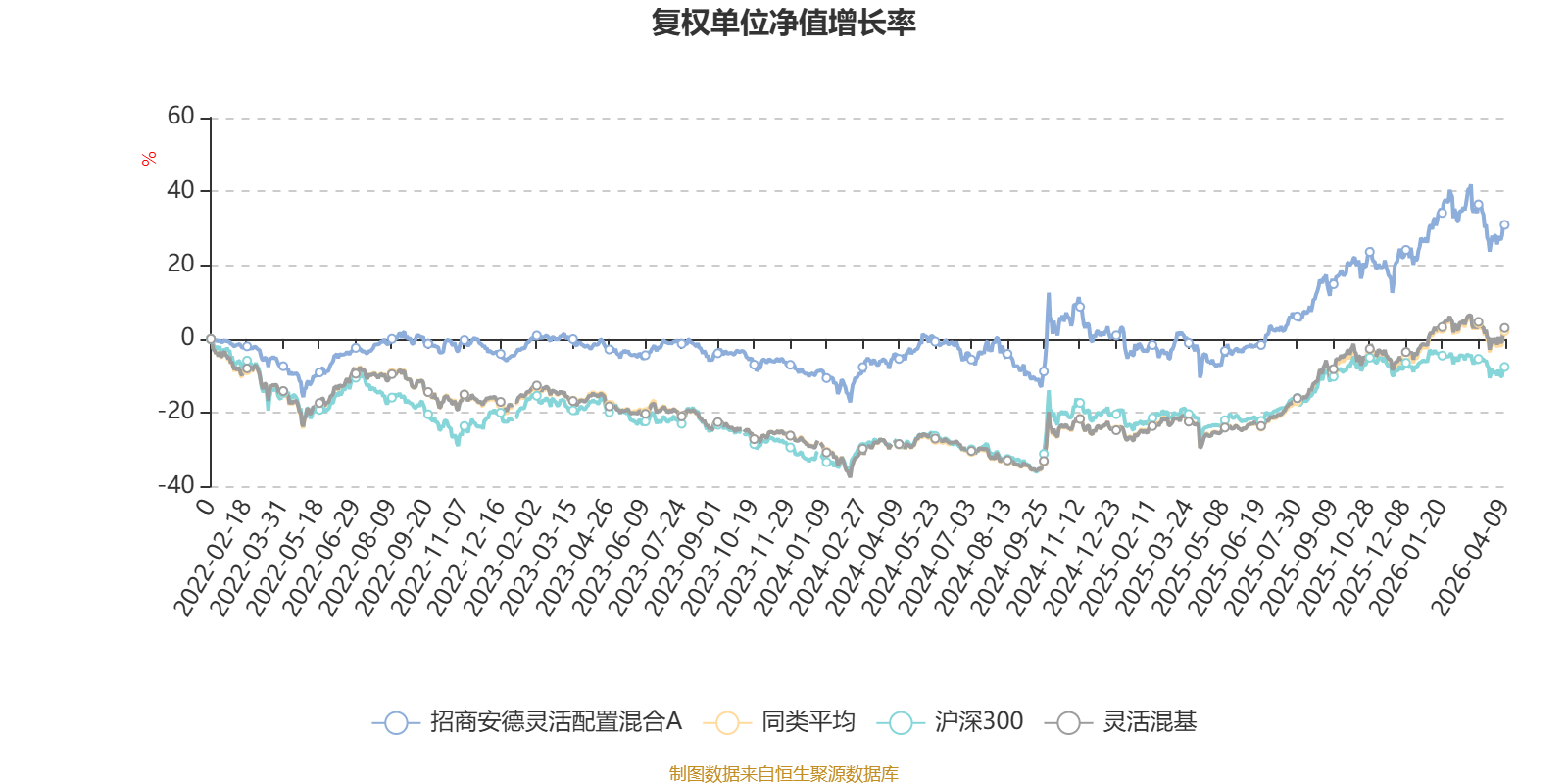 截至4月9日,招商安德灵活配置混合A近三个月复权单位净值增长率为-0.98%,位于同类可比基金691/1287;近半年复权单位净值增长率为7.42%,位于同类可比基金308/1286;近一年复权单位净值增长率为38.71%,位于同类可比基金507/1286;近三年复权单位净值增长率为33.29%,位于同类可比基金308/1286。