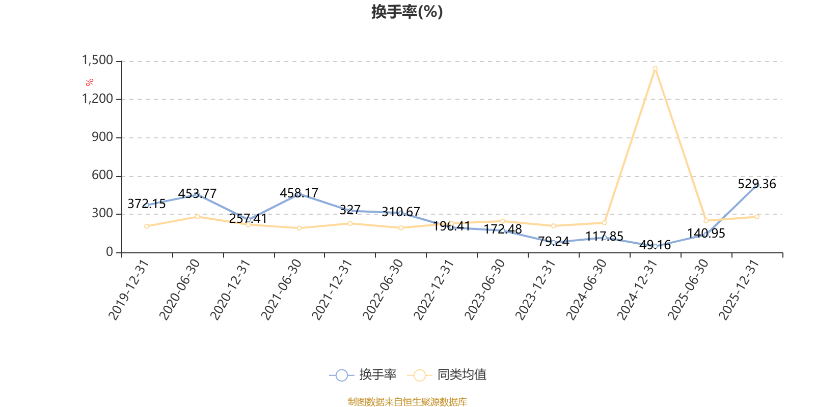 截至2025年12月31日,基金最近一年换手率约636.64%。