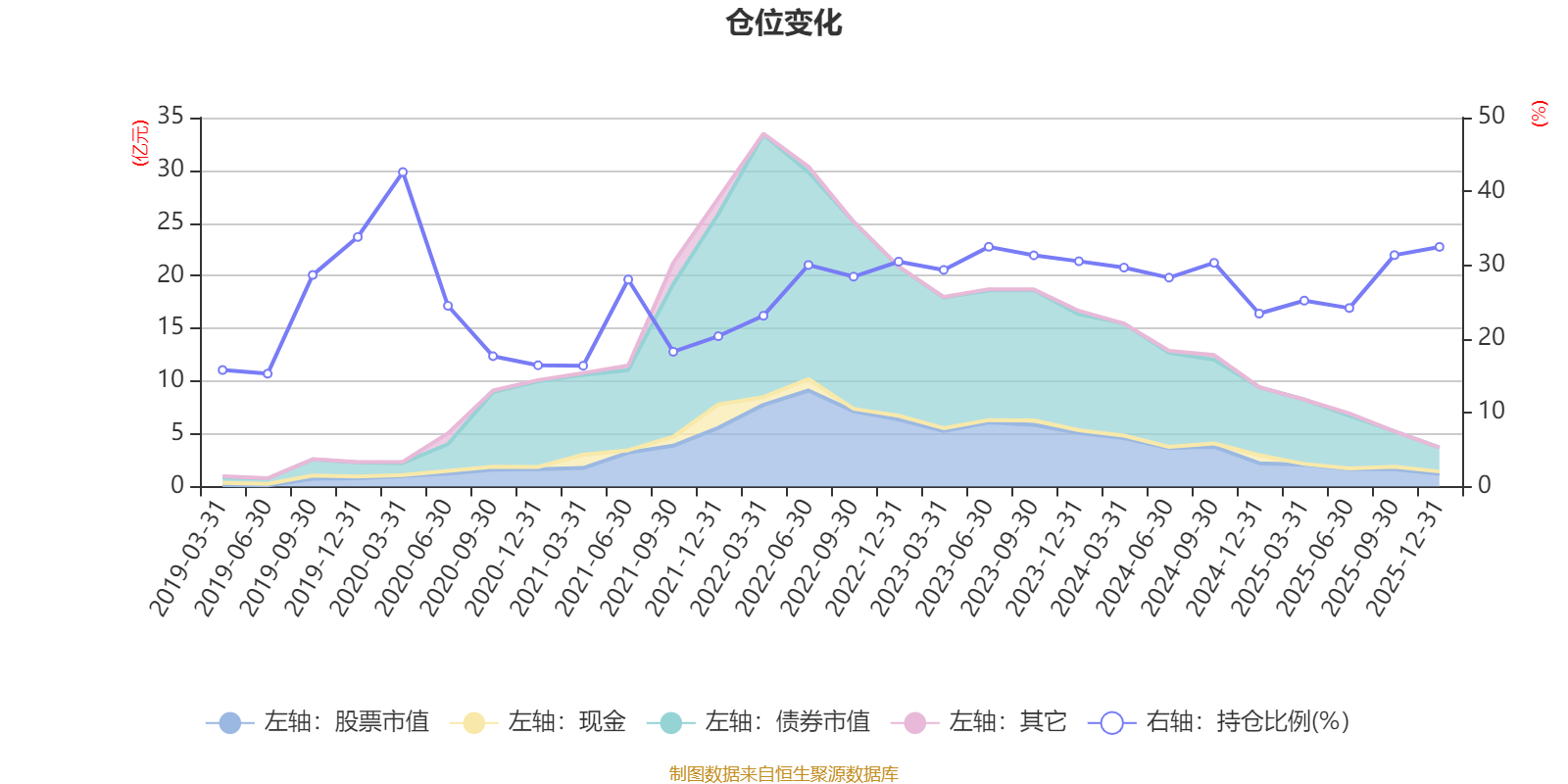 据定期报告数据统计,近三年平均股票仓位为29.06%,同类平均为72.57%。2020年一季度末基金达到42.62%的最高仓位,2019年上半年末最低,为15.3%。