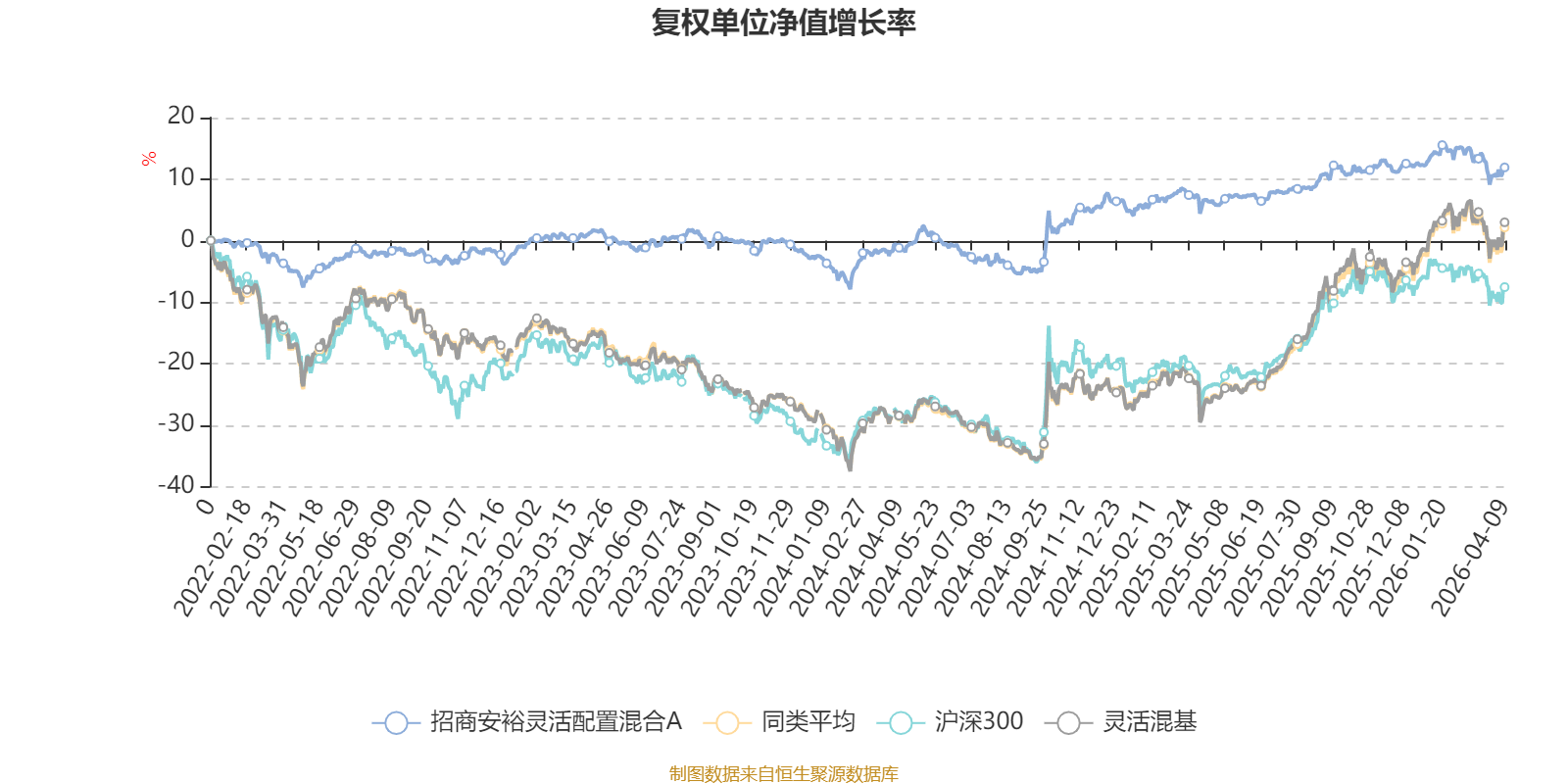 截至4月9日,招商安裕灵活配置混合A近三个月复权单位净值增长率为-2.00%,位于同类可比基金780/1287;近半年复权单位净值增长率为-0.26%,位于同类可比基金819/1286;近一年复权单位净值增长率为5.71%,位于同类可比基金1139/1286;近三年复权单位净值增长率为9.97%,位于同类可比基金726/1286。