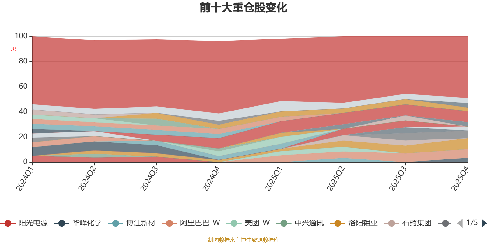 截至2025年末,基金十大重仓股分别是腾讯控股、洛阳钼业、阿里巴巴-W、三生制药、中芯国际、福瑞医科、亚钾国际、华峰化学、宁德时代、立讯精密。