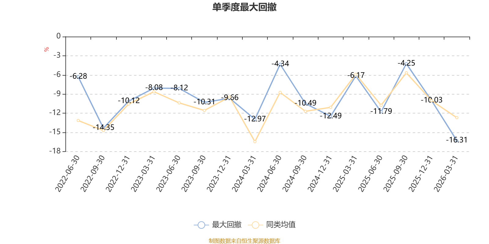 截至4月9日,基金近三年最大回撤为26.06%,同类可比基金排名100/549。单季度最大回撤出现在2026年一季度,为16.31%。