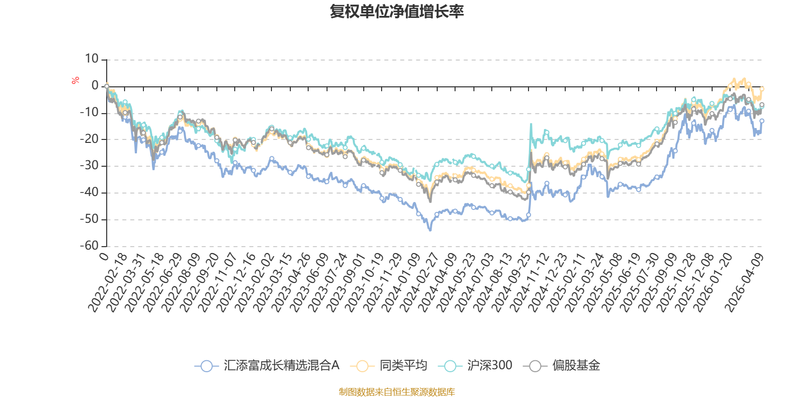 截至4月9日,汇添富成长精选混合A近三个月复权单位净值增长率为-2.34%,位于同类可比基金77/130;近半年复权单位净值增长率为-3.08%,位于同类可比基金87/130;近一年复权单位净值增长率为46.36%,位于同类可比基金47/130;近三年复权单位净值增长率为23.65%,位于同类可比基金48/126。
