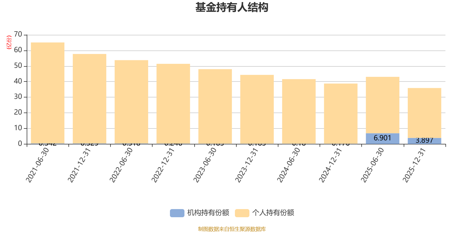 截至2025年12月31日,基金持有人共计4.36万户,合计持有35.89亿份。其中管理人员工持有42.92万份,占比0.01%,机构持有份额占比10.86%,个人投资者占比89.14%。