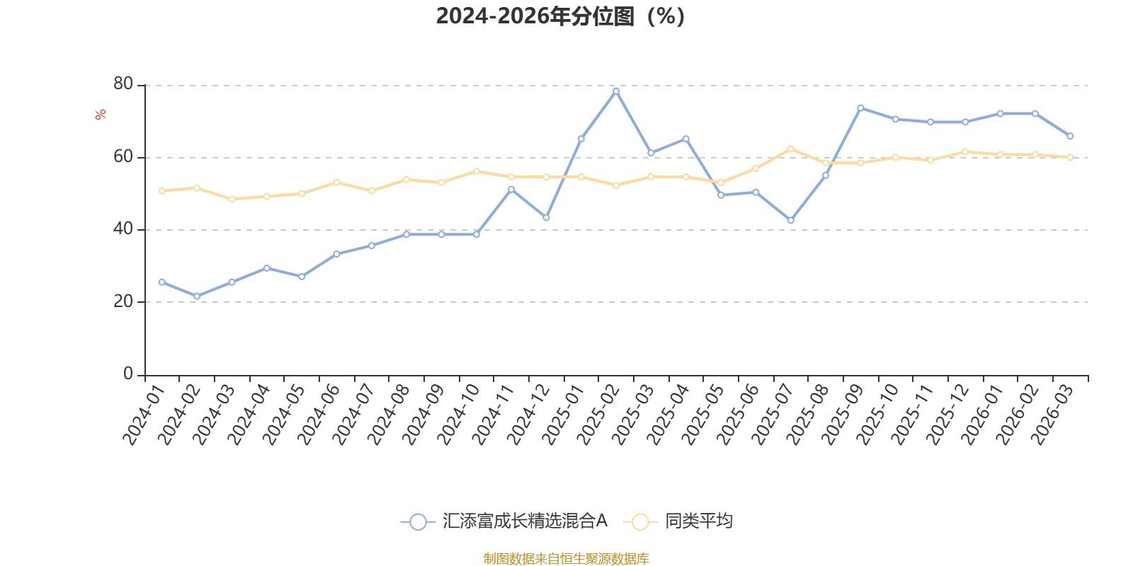 通过所选区间该基金净值增长率分位图,可以观察该基金与同类基金业绩比较情况。图为坐标原点到区间内某时点的净值增长率在同类基金中的分位数。