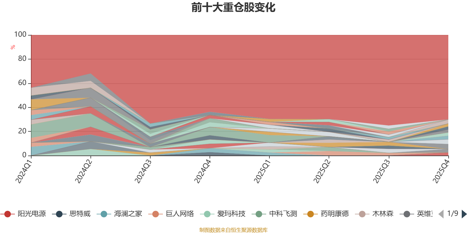 截至2025年末,基金十大重仓股分别是极米科技、海信视像、安克创新、海兴电力、英维克、盛屯矿业、菲利华、阳光电源、华新建材、杰瑞股份。