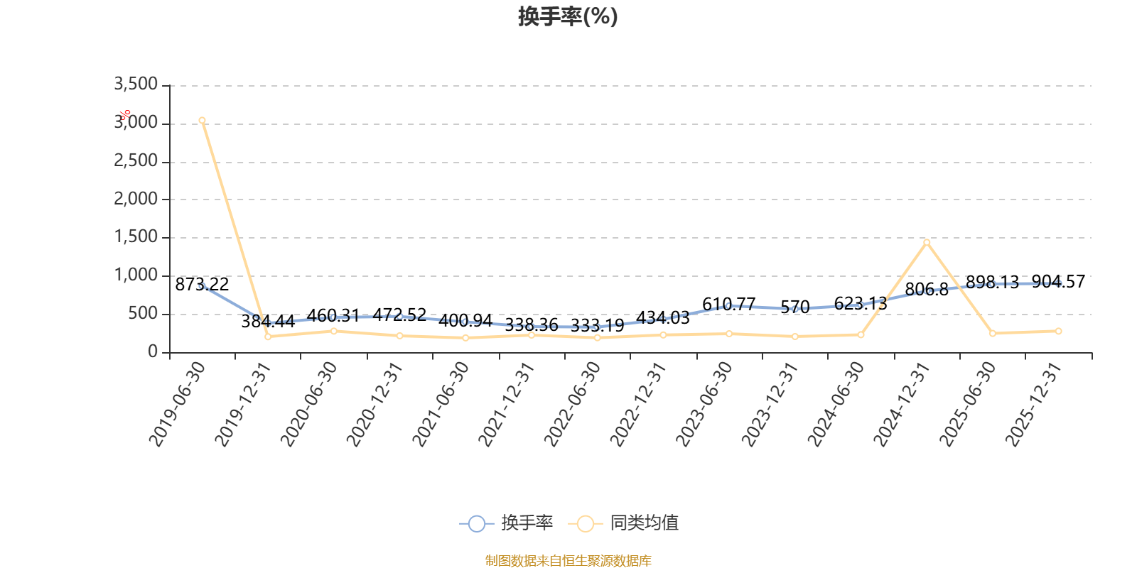 截至2025年12月31日,基金最近一年换手率约1700.29%,持续1年高于同类均值。