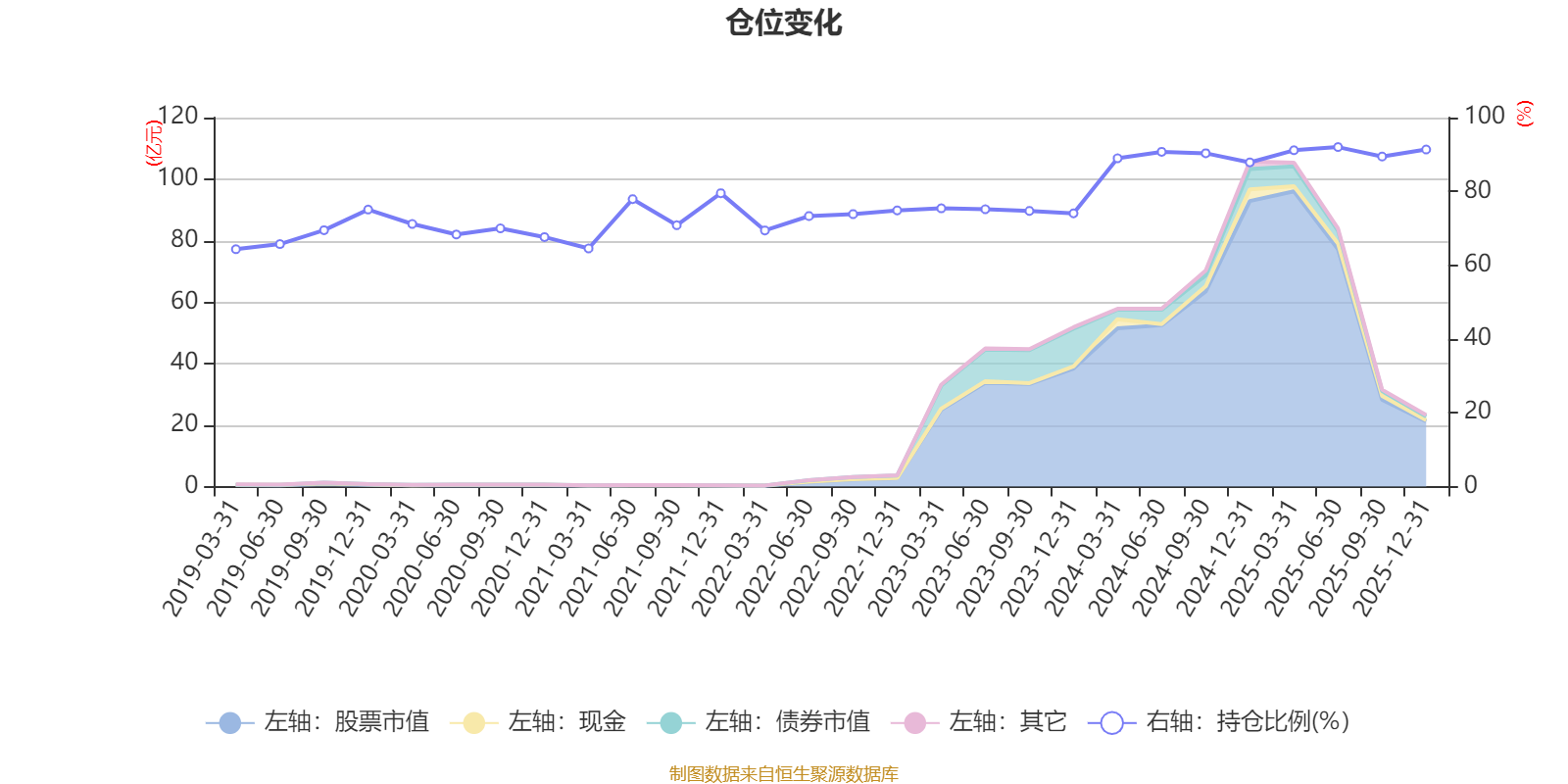 据定期报告数据统计,近三年平均股票仓位为85.1%,同类平均为86.17%。2025年上半年末基金达到92.01%的最高仓位,2019年一季度末最低,为64.33%。