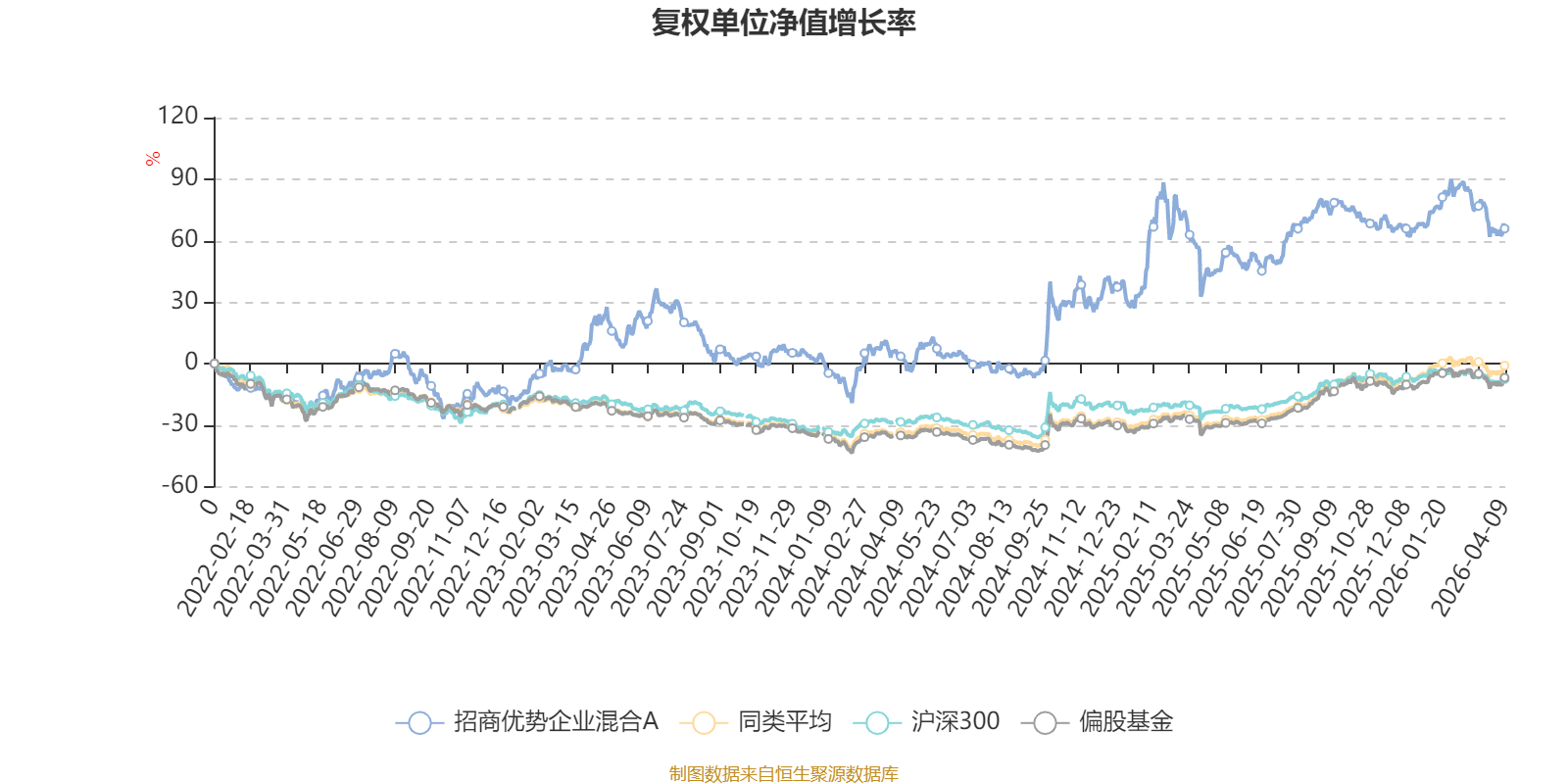 截至4月9日,招商优势企业混合A近三个月复权单位净值增长率为-4.93%,位于同类可比基金98/130;近半年复权单位净值增长率为-5.33%,位于同类可比基金93/130;近一年复权单位净值增长率为19.58%,位于同类可比基金100/130;近三年复权单位净值增长率为34.56%,位于同类可比基金30/126。