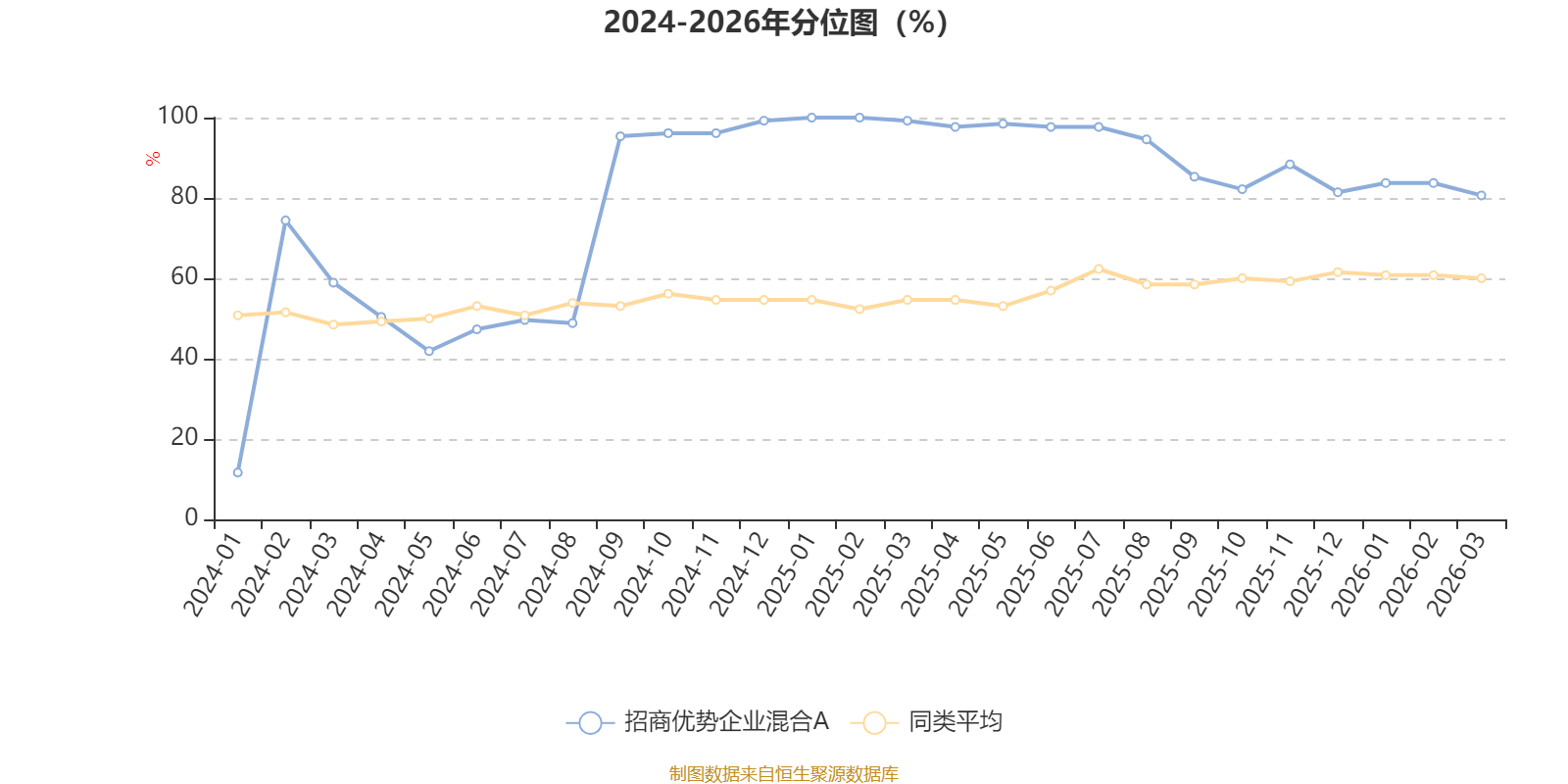 通过所选区间该基金净值增长率分位图,可以观察该基金与同类基金业绩比较情况。图为坐标原点到区间内某时点的净值增长率在同类基金中的分位数。