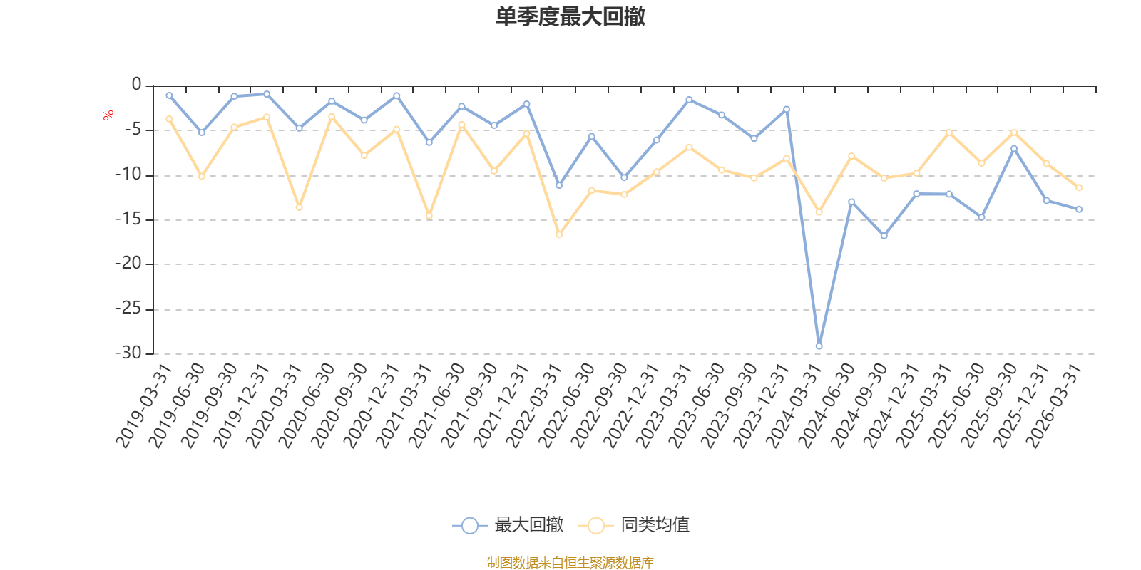截至4月9日,基金近三年最大回撤为32.3%,同类可比基金排名692/1264。单季度最大回撤出现在2024年一季度,为29.14%。