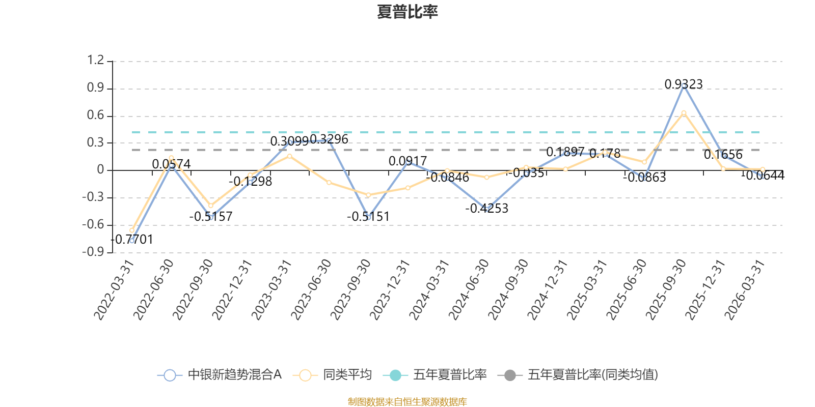 截至3月31日,基金近三年夏普比率为0.6614,位于同类可比基金395/1274。