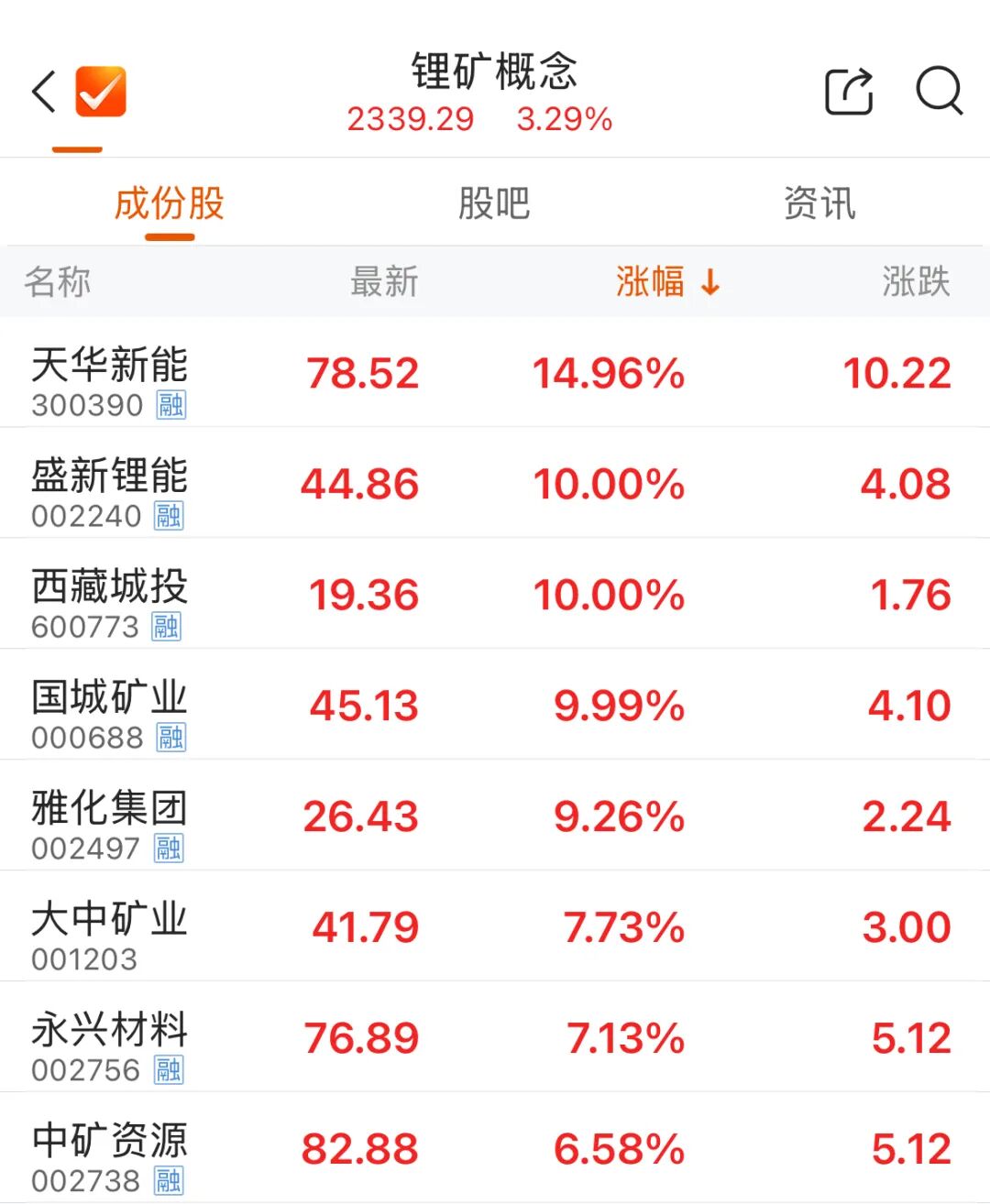 午后,锂矿概念再度拉升。国城矿业、盛新锂能涨停,此前西藏城投涨停,雅化集团、大中矿业等跟涨。期货盘面上,广期所碳酸锂期货主力合约早盘上涨4.59%,最新价报163500元/吨。