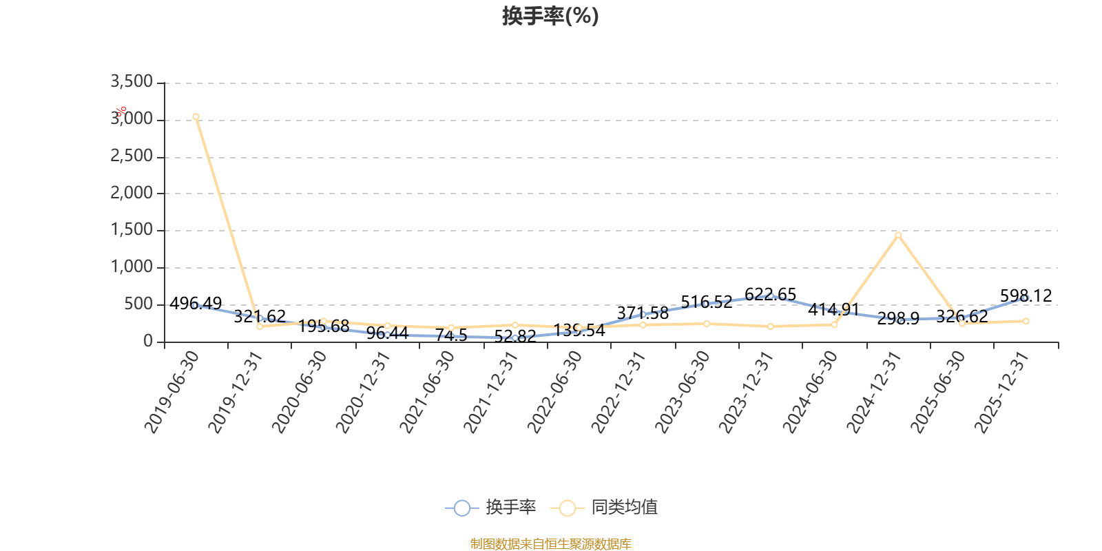 截至2025年12月31日,基金最近一年换手率约927.69%,持续1年高于同类均值。