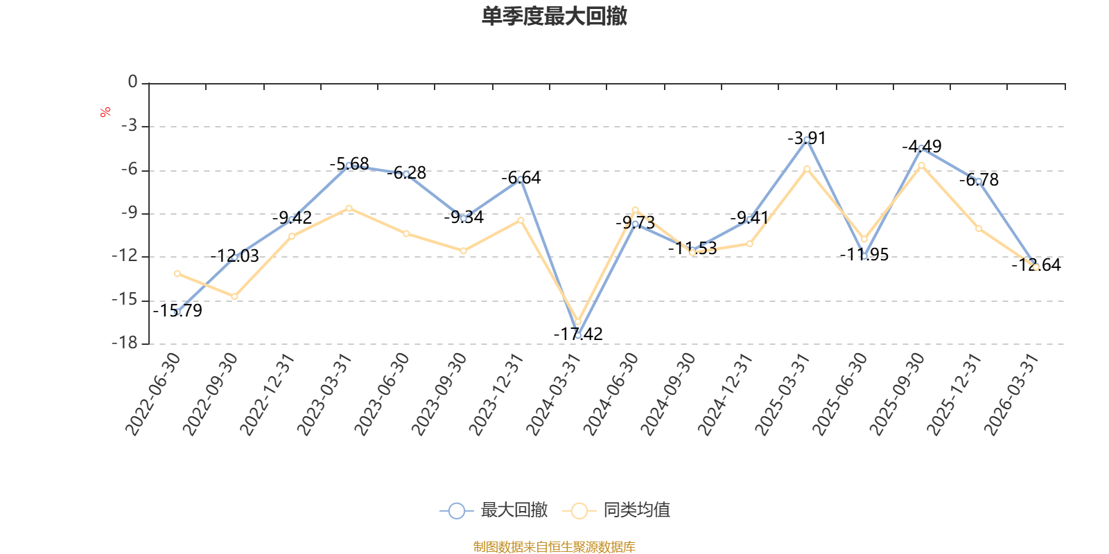 截至4月9日,基金近三年最大回撤为26.14%,同类可比基金排名103/549。单季度最大回撤出现在2024年一季度,为17.42%。