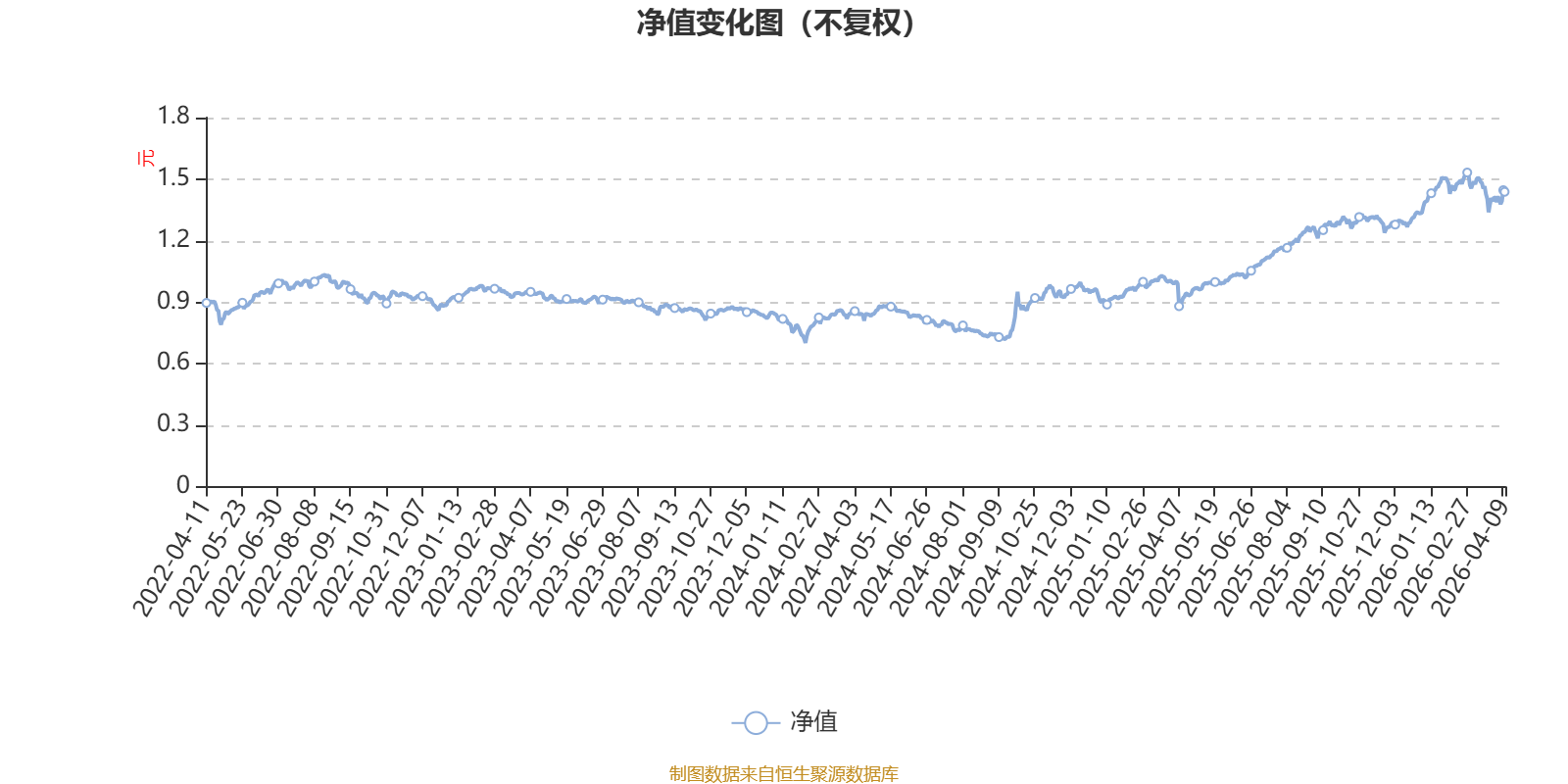 该基金属于偏股混合型基金。截至4月9日,单位净值为1.438元。基金经理是曲径和宋婷。
