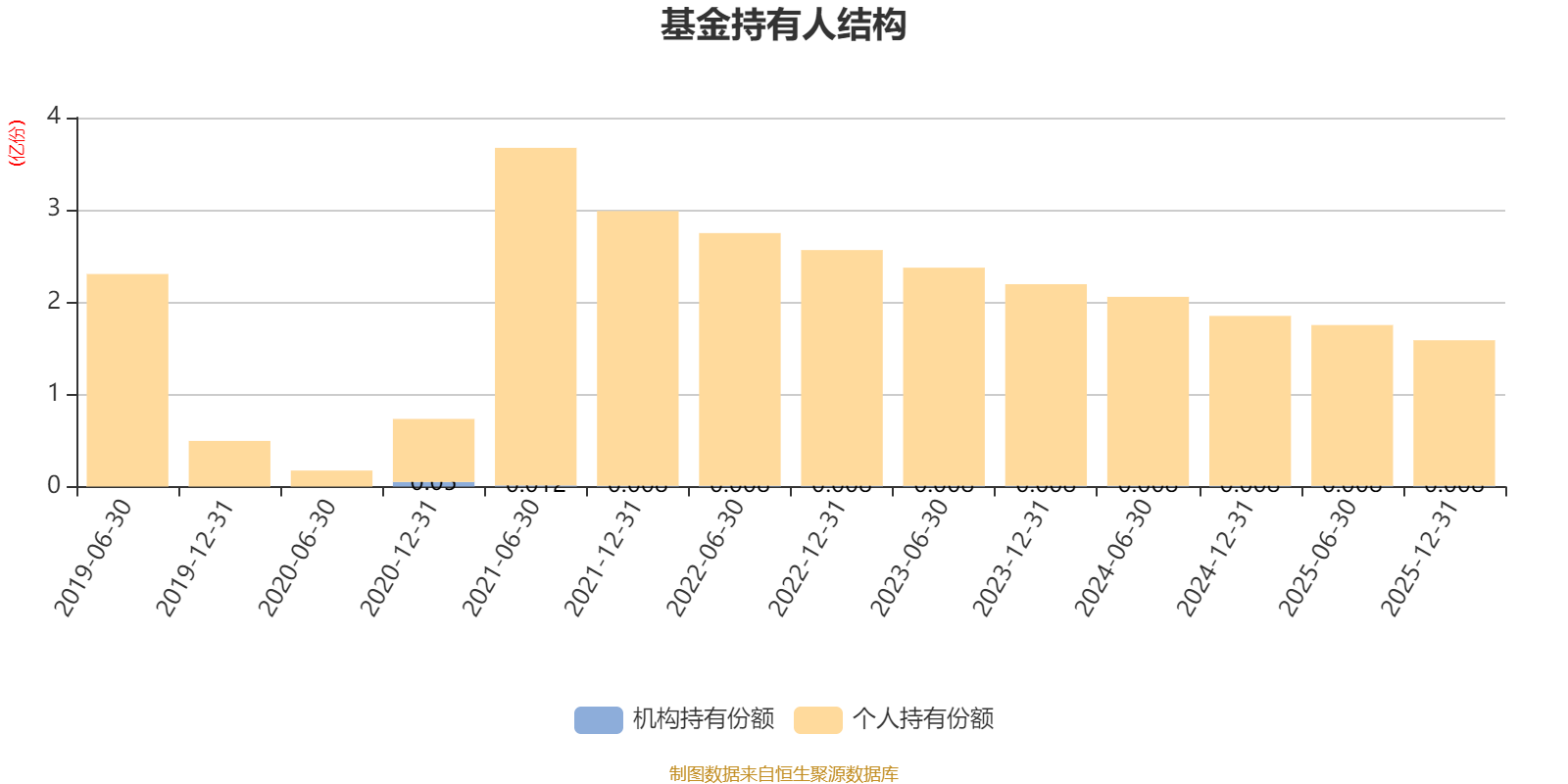 截至2025年12月31日,基金持有人共计5376户,合计持有1.59亿份。其中管理人员工持有22.53万份,占比0.14%,机构持有份额占比0.49%,个人投资者占比99.51%。