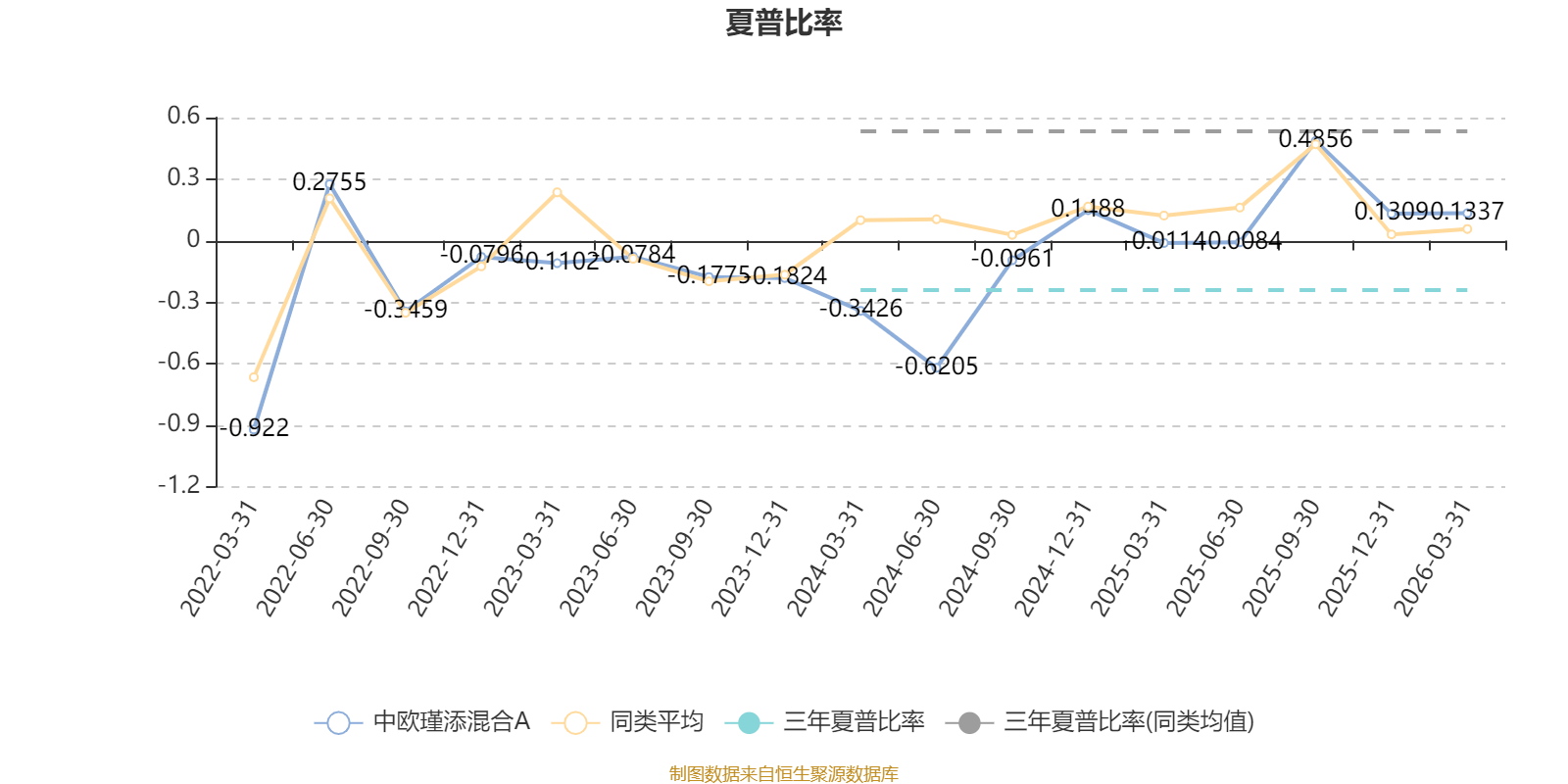 截至3月31日,基金近三年夏普比率为-0.2413,位于同类可比基金518/550。