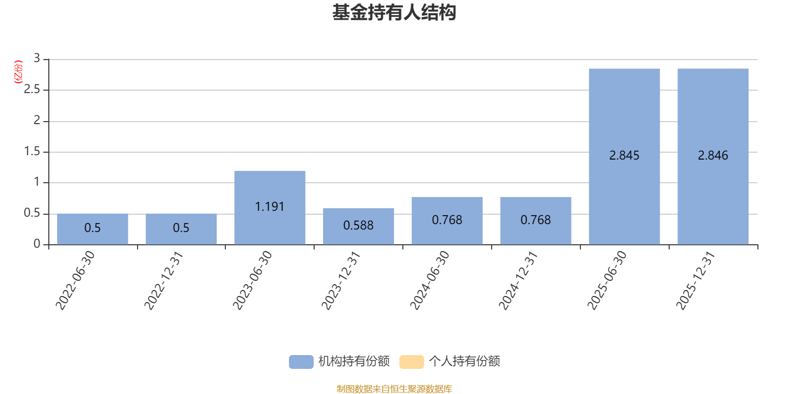 截至2025年12月31日,基金持有人共计204户,合计持有2.85亿份。其中管理人员工持有2277.88份,机构持有份额占比99.97%,个人投资者占比0.03%。