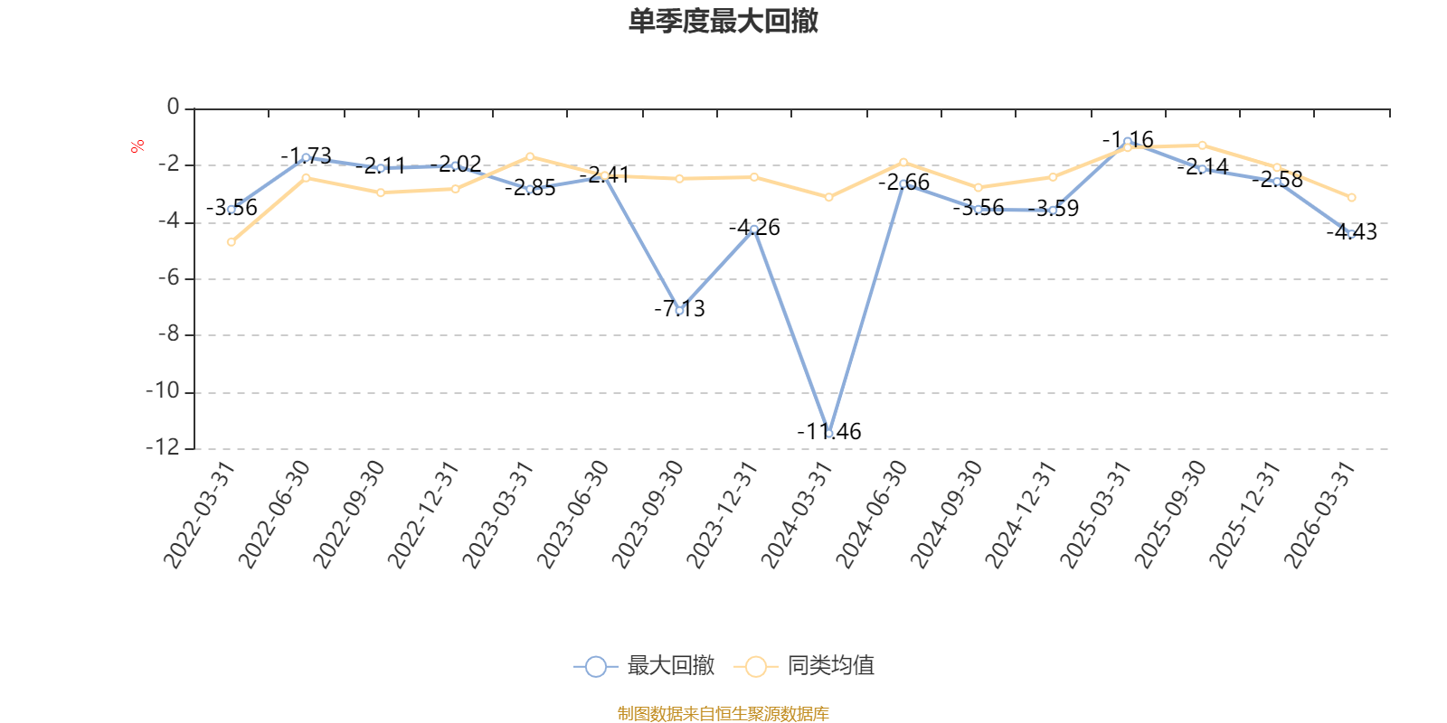 截至4月9日,基金近三年最大回撤为17.41%,同类可比基金排名512/534。单季度最大回撤出现在2024年一季度,为11.46%。