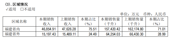不仅如此,惠泉啤酒的全国化之路也并不顺畅。虽由头部啤酒企业燕京啤酒控股,但对惠泉啤酒的全国化扩张帮助有限,惠泉啤酒的营收主要依赖福建本省,2025年,福建市场作为惠泉啤酒的“大本营”,贡献了75.51%的营收,省外市场营收同比下降1.88%,占比24.49%。在处于深度存量竞争阶段的啤酒市场中,头部啤酒企业正在加速全国化扩张并“查漏补缺”,在这一趋势下,地方酒企将面临更大的竞争压力。