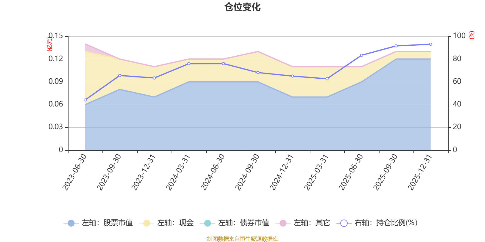 据定期报告数据统计,成立以来平均股票仓位为71.73%,同类平均为84.04%。2025年末基金达到93.04%的最高仓位,2023年上半年末最低,为44.12%。