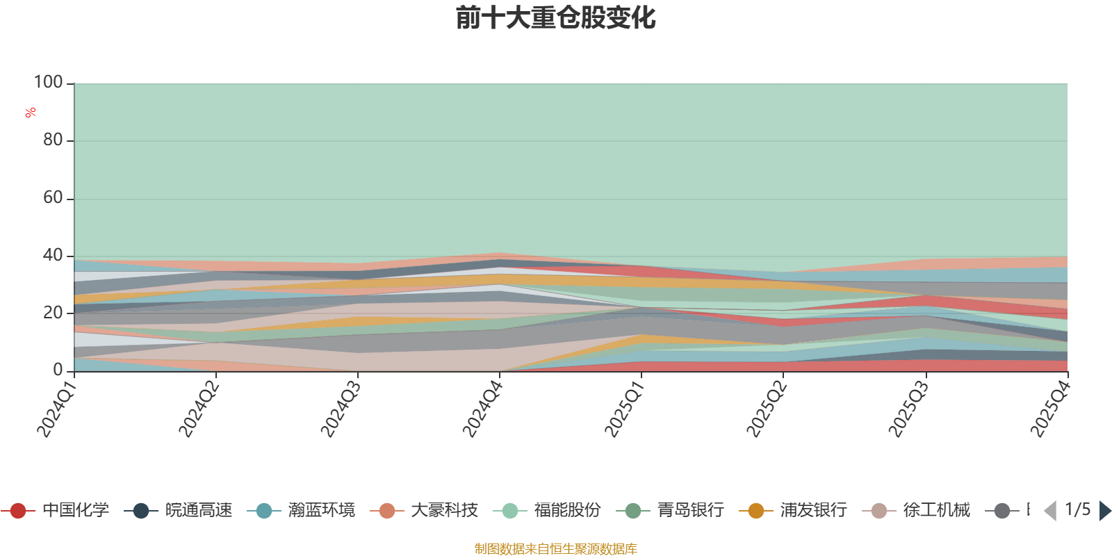 截至2025年末,基金十大重仓股分别是齐鲁银行、江苏银行、唐山港、中国化学、四川路桥、中煤能源、中原传媒、青岛银行、皖通高速、中国移动。