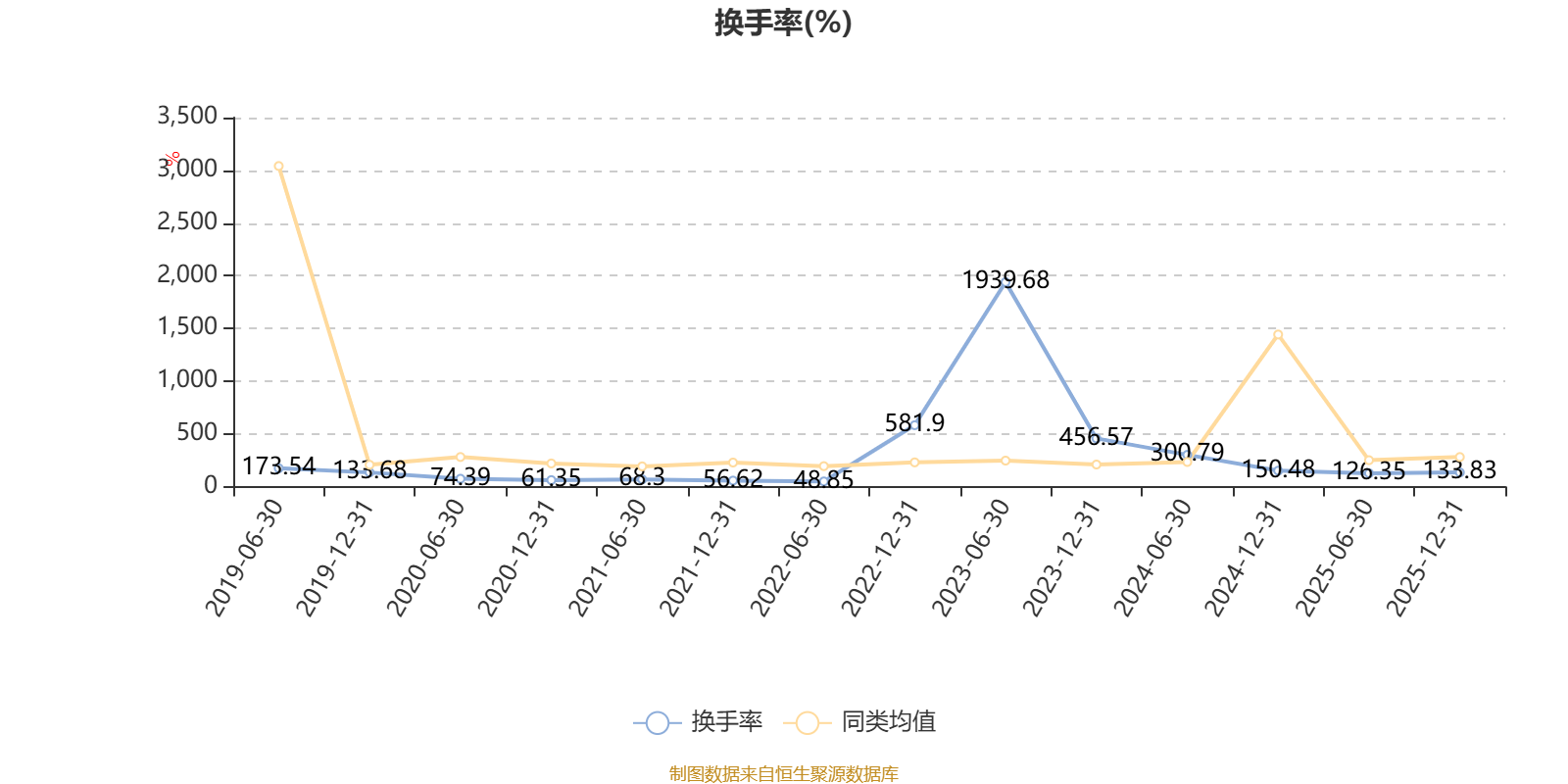 截至2025年12月31日,基金最近一年换手率约256.28%,持续1年低于同类均值。