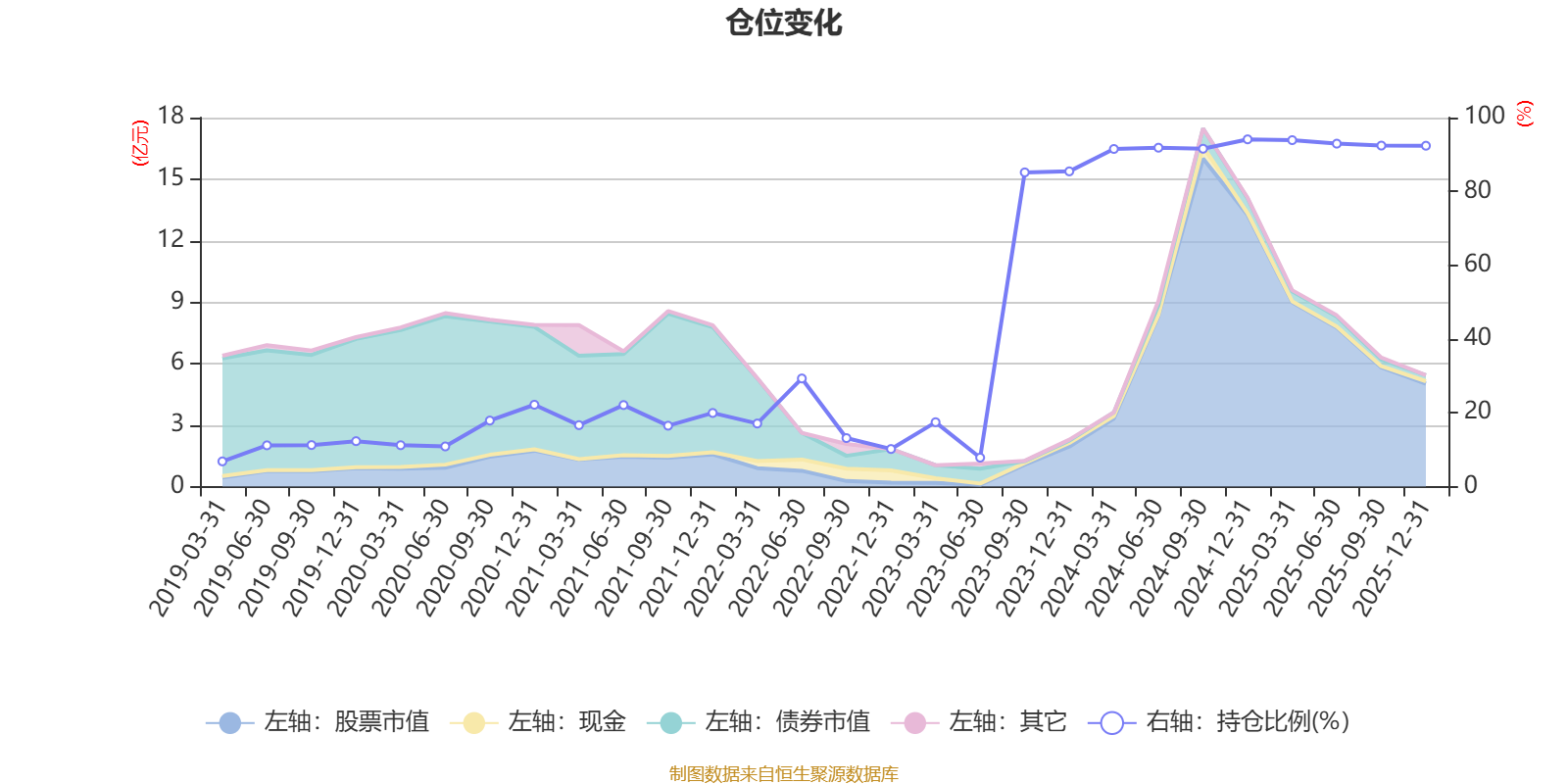 据定期报告数据统计,近三年平均股票仓位为78.04%,同类平均为72.57%。2024年末基金达到94.11%的最高仓位,2019年一季度末最低,为6.83%。